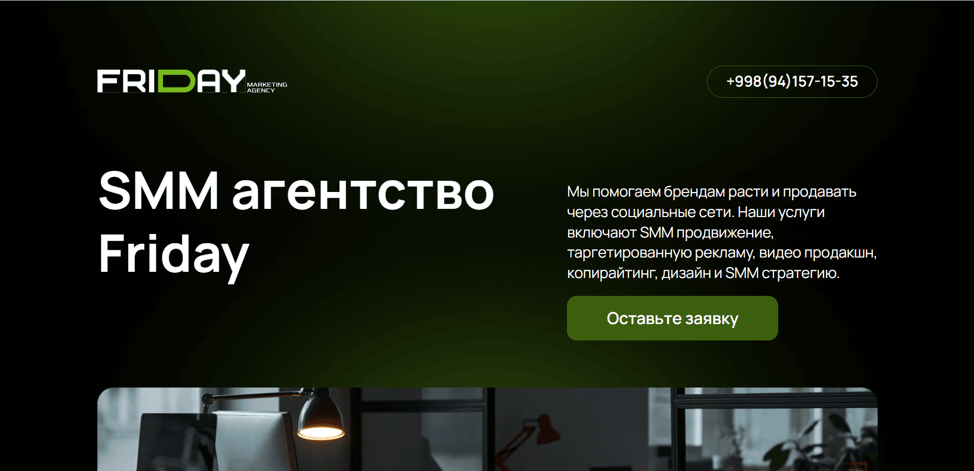 “Biz veb-sayt, SEO va reklama orqali biznesingiz uchun kafolatlangan mijozlar oqimini yaratamiz.”