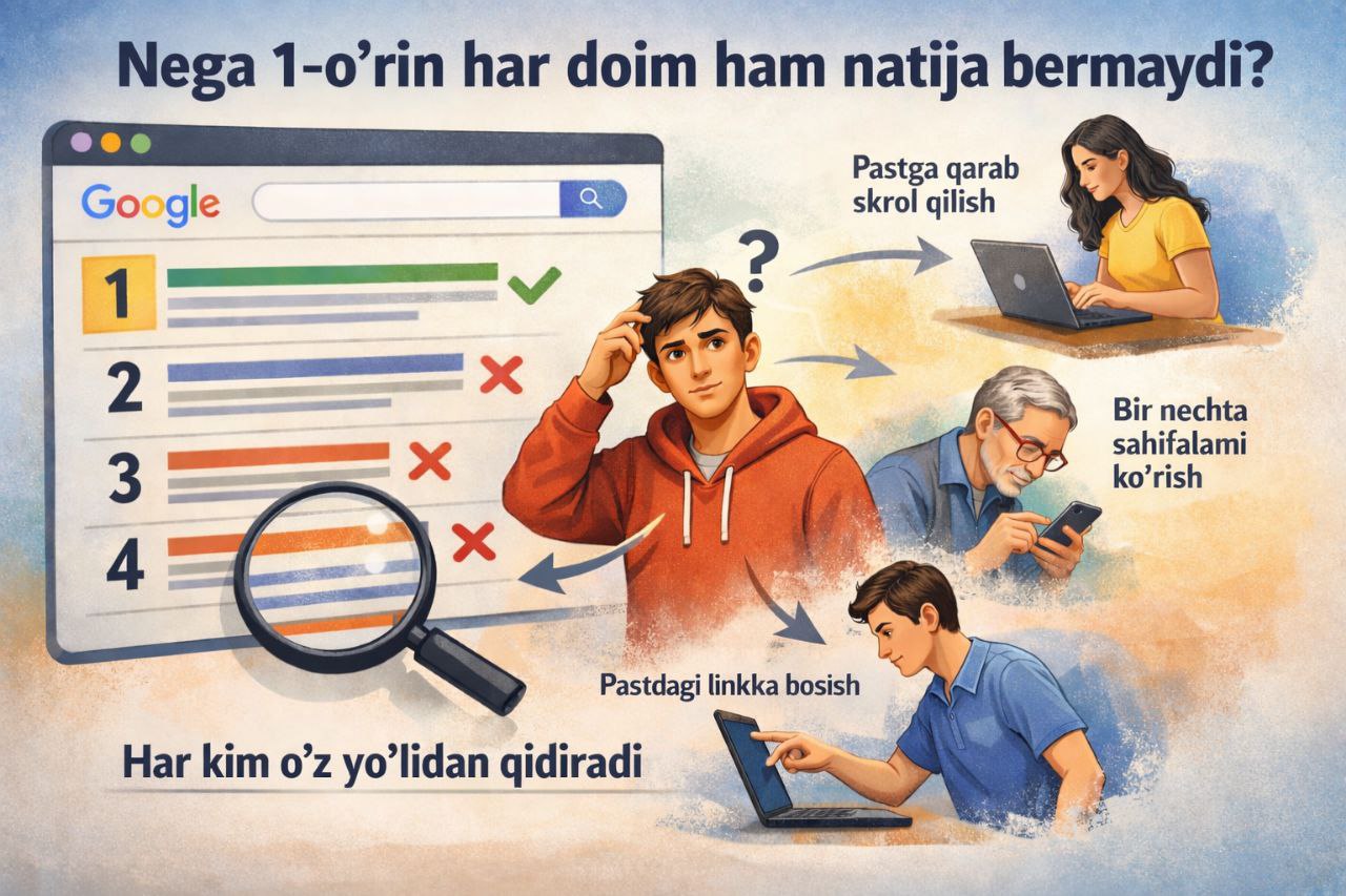 Ya’ni, foydalanuvchi uchun 1-o‘rin — yakuniy qaror emas, balki boshlang‘ich nuqta, xolos.